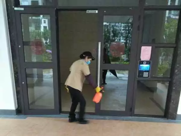 對所管項目的室內場所實行全面消毒。對出入門禁、康體設施、地下車庫、電梯、垃圾中轉站等關鍵區位噴灑消毒水;使用醫用酒精、84消毒液等消毒劑擦拭兒童娛樂設施、公共通道的門把手、開關、按鍵等。針對人流密集的項目加大消毒頻次。